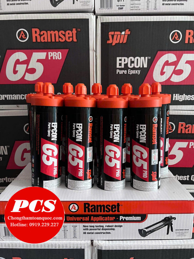 Ramset Epcon G5 là keo epoxy khoan cấy thép nhập khẩu từ Mỹ, một sản phẩm gốc Epoxy chất lượng cao của ITW (Illinois Tool Works), một trong những tập đoàn lớn thuộc Fortune 200. Sản phẩm này được ứng dụng rộng rãi trong việc khoan cấy bu lông, thép chờ, và các kết cấu chịu lực khác, đặc biệt trong môi trường khắc nghiệt như khu vực ngập nước hoặc có tải trọng động.